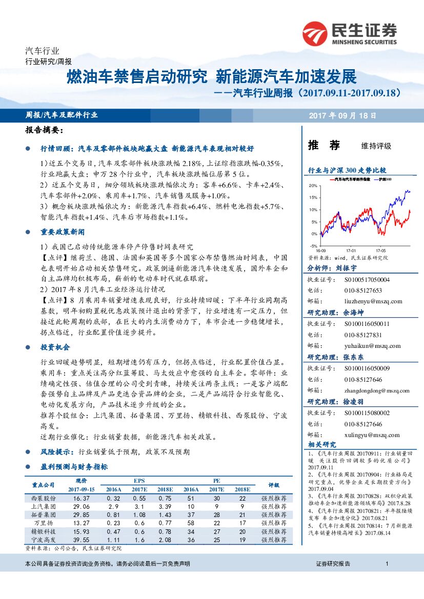 民生证券:汽车行业周报:燃油车禁售启动研究 新能源汽车加速发展.pdf