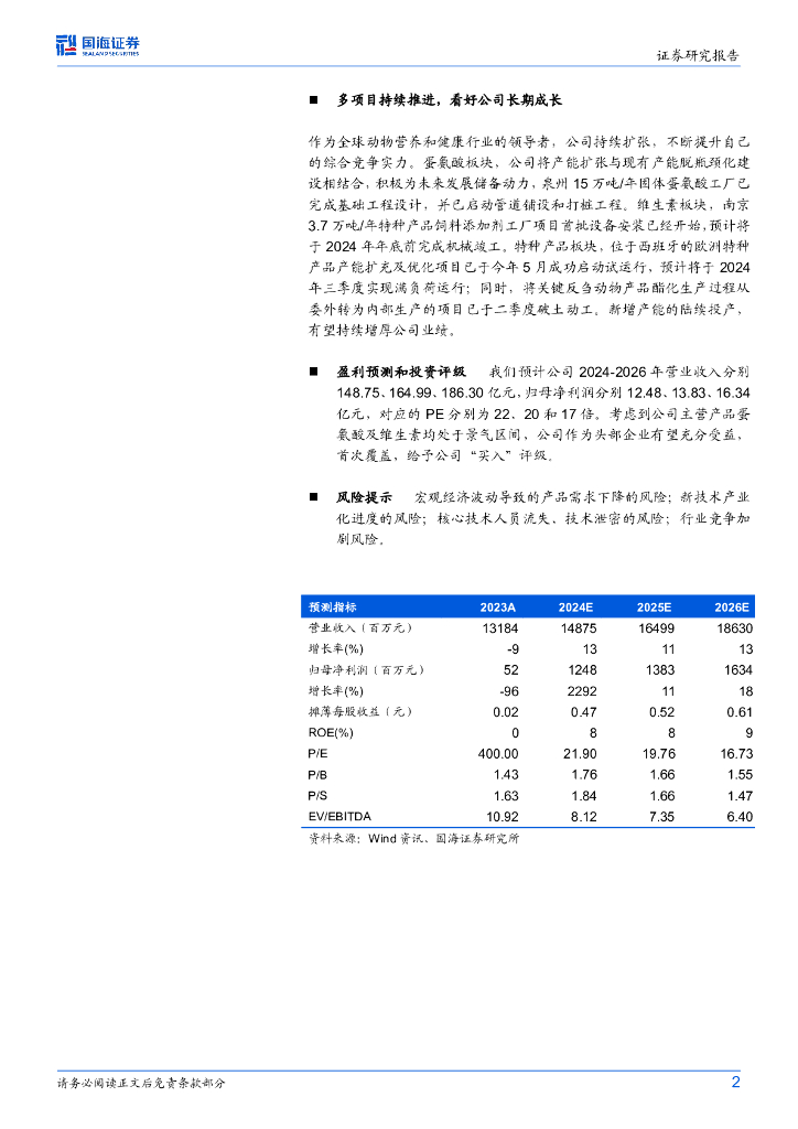 国海证券:安迪苏(600299)-2024年半年报点评:蛋氨酸量价齐升,上半年业绩同比高增.pdf