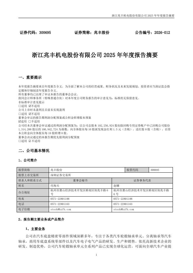 300695-兆丰股份:2025年年度报告摘要.pdf
