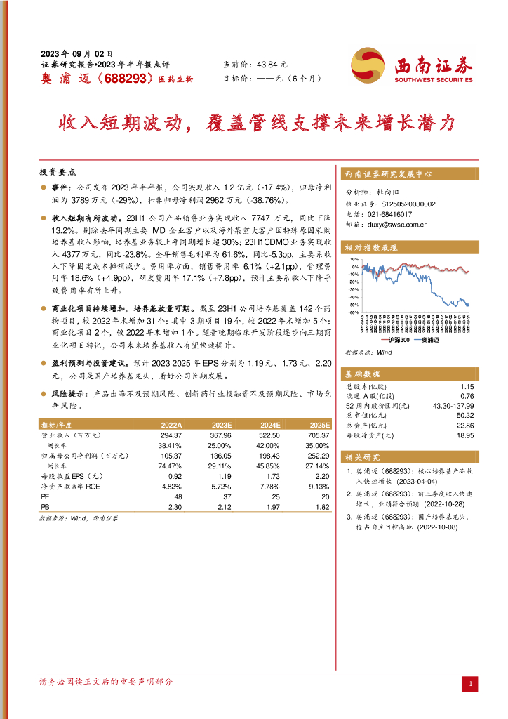西南证券:奥浦迈(688293)-收入短期波动,覆盖管线支撑未来增长潜力.pdf