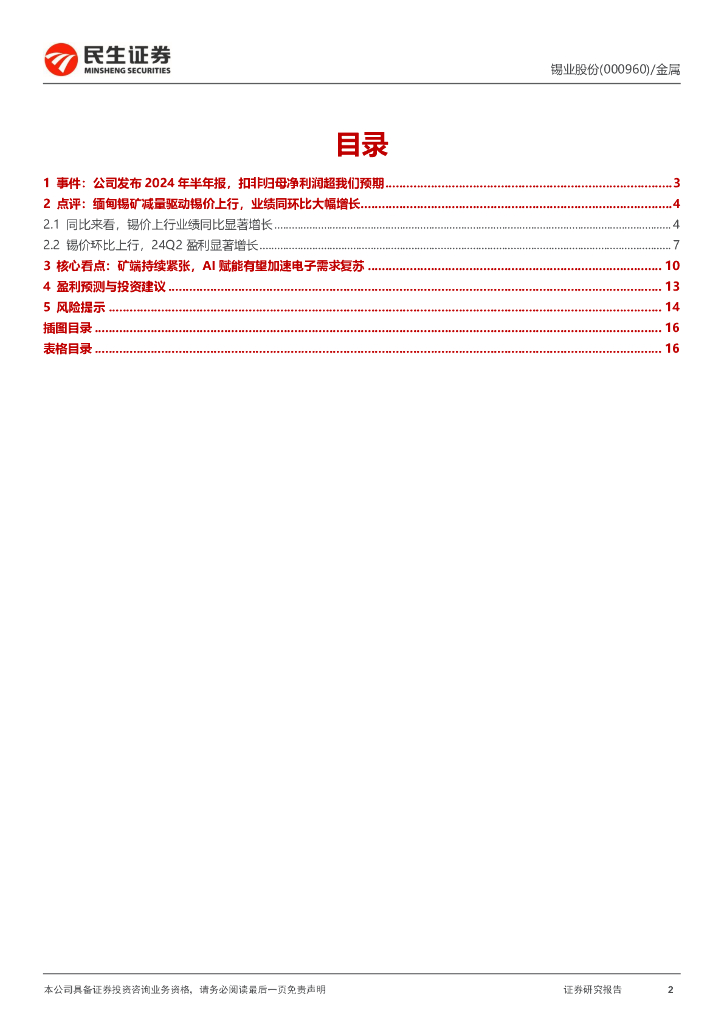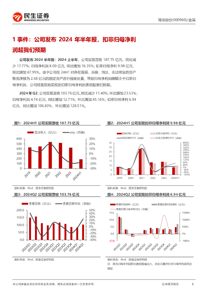 民生证券:锡业股份(000960)-2024年半年报点评:扣非净利超预期,矿端紧张驱动锡价上行.pdf