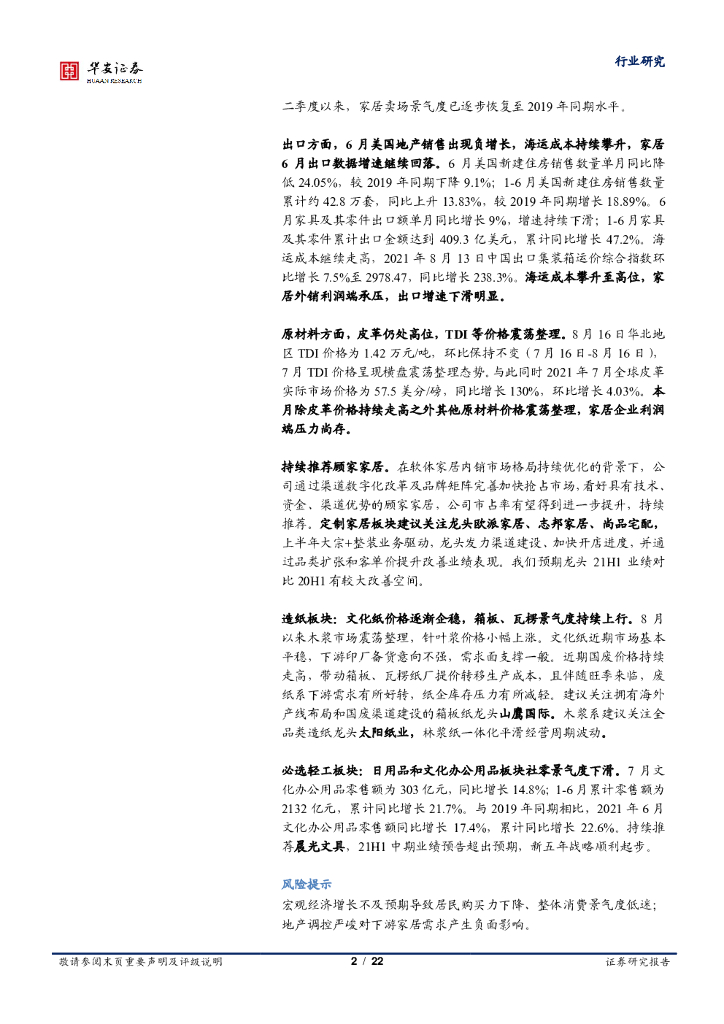 华安证券:轻工制造行业月报:7月竣工持续回暖;海运成本走高,家居出口增速回落.pdf