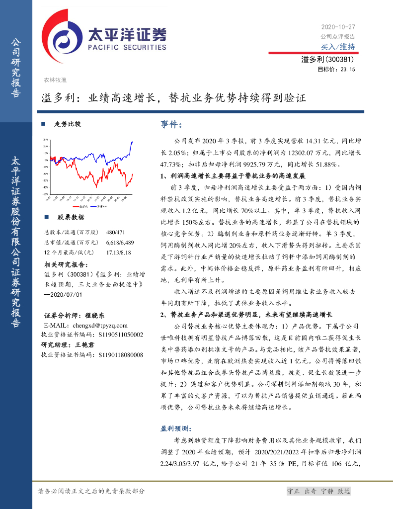 太平洋证券:溢多利:业绩高速增长,替抗业务优势持续得到验证.pdf
