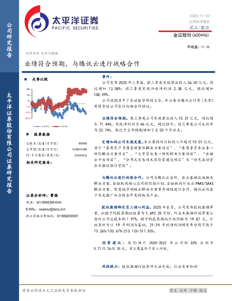 太平洋证券:金证股份(600446)-业绩符合预期,与腾讯云进行战略合作.pdf
