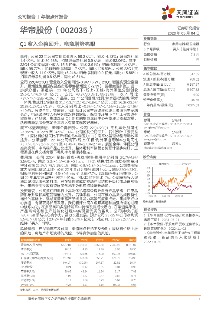 天风证券:华帝股份(002035)-Q1收入企稳回升,电商增势亮眼.pdf