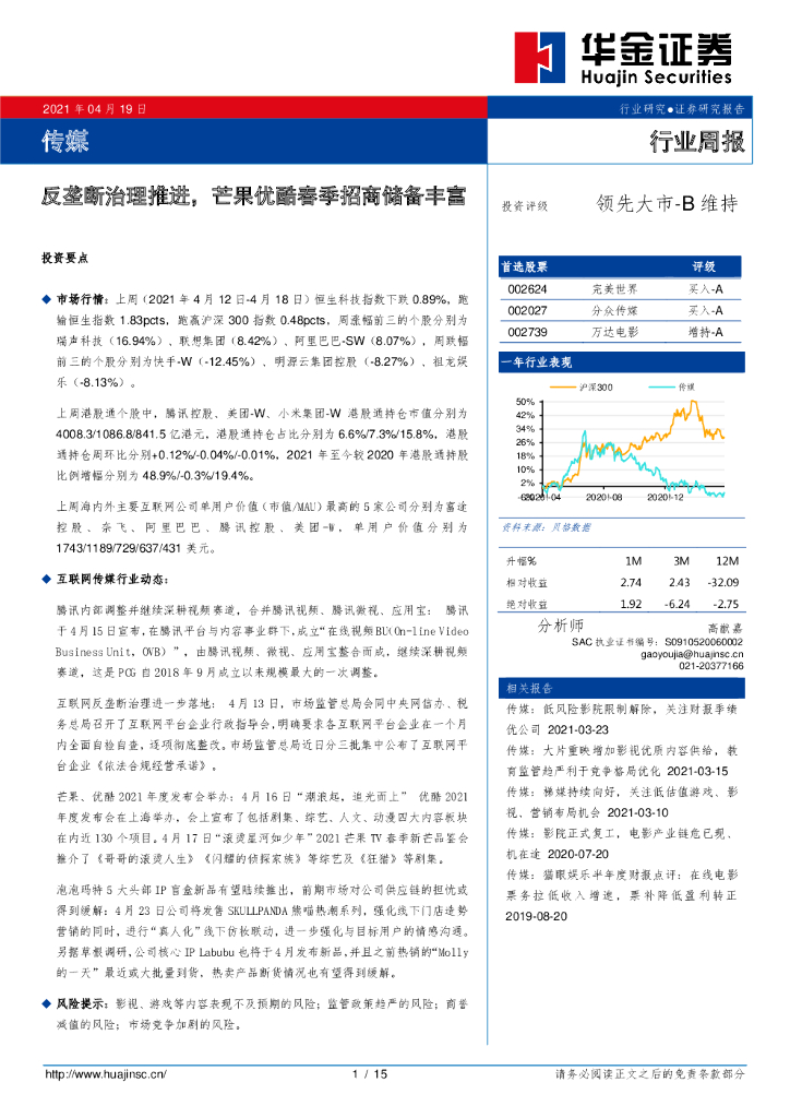 华金证券:传媒行业周报:反垄断治理推进,芒果优酷春季招商储备丰富.pdf