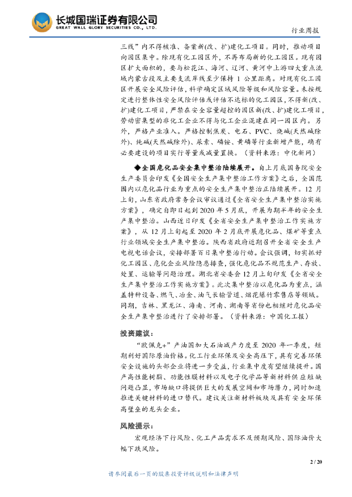 长城国瑞证券:化工行业双周报2019年第24期(总第24期):“欧佩克+”产油国加大石油减产力度,全国危化品安全集中整治陆续展开.pdf