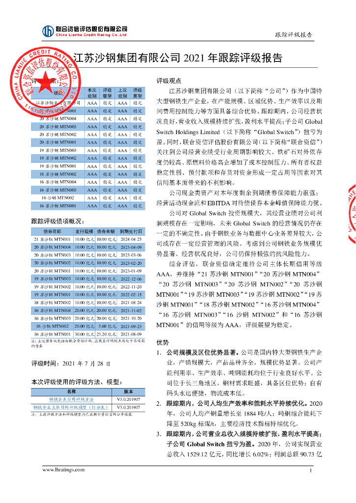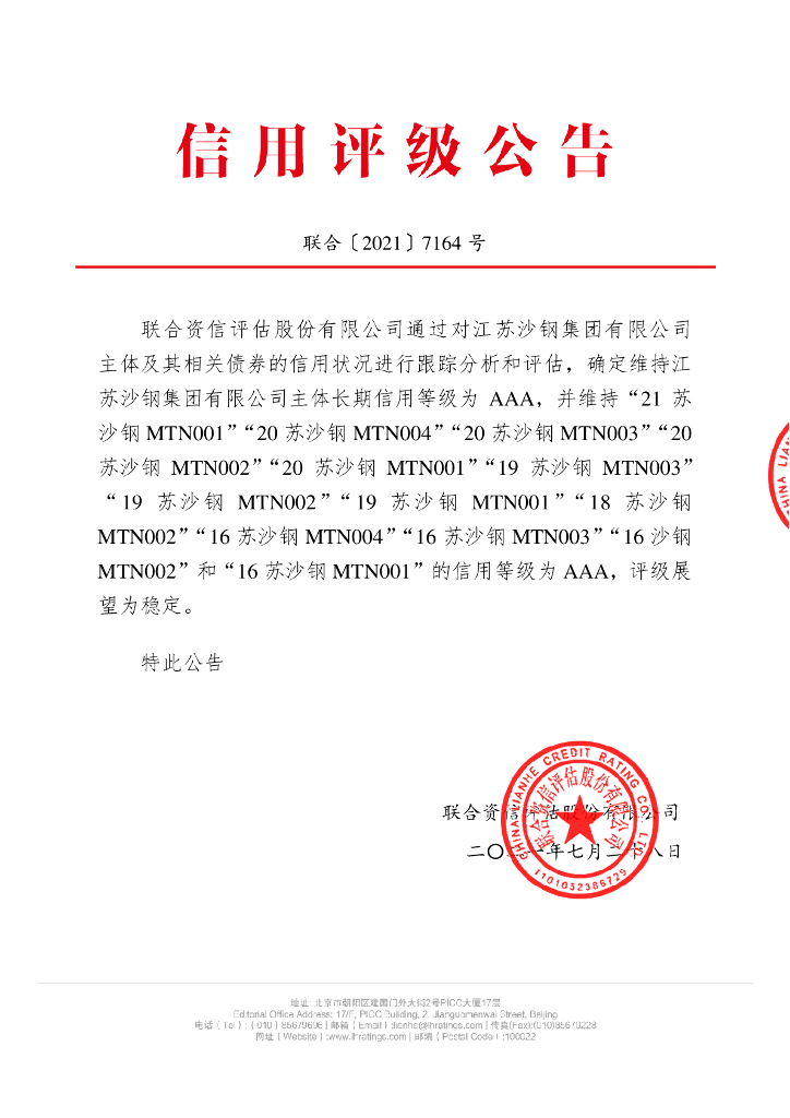 联合资信:江苏沙钢集团有限公司信用评级报告及跟踪评级安排.pdf