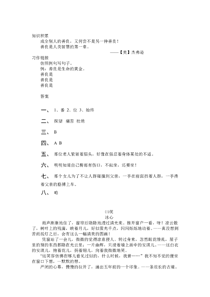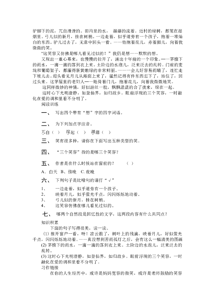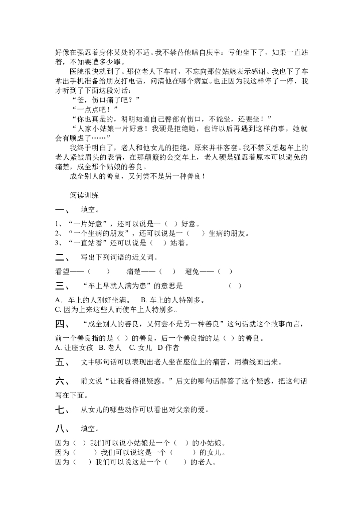 五年级语文阅读理解(包括答案)100篇【106页】.doc