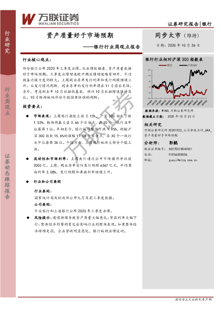 万联证券:银行行业周观点报告:资产质量好于市场预期.pdf