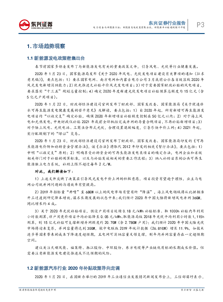 东兴证券:电力设备与新能源行业月报(2020年2月):新能源发电政策密集出台,新能源车补贴退坡预计平缓.pdf