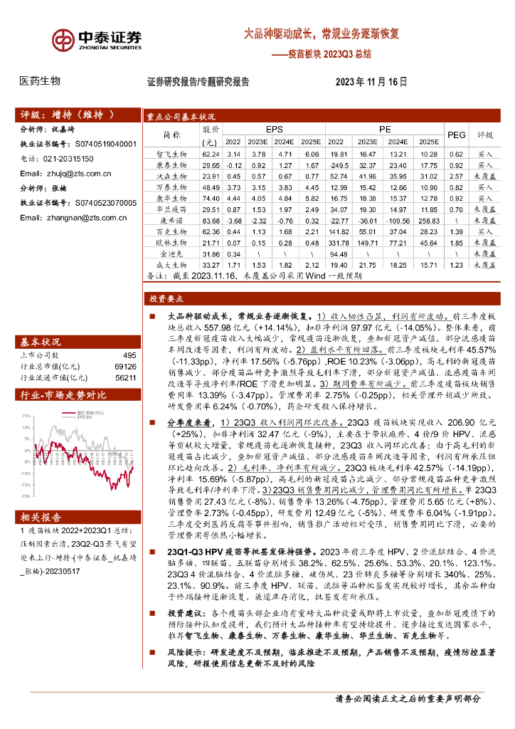 中泰证券:疫苗板块2023Q3总结:大品种驱动成长,常规业务逐渐恢复.pdf
