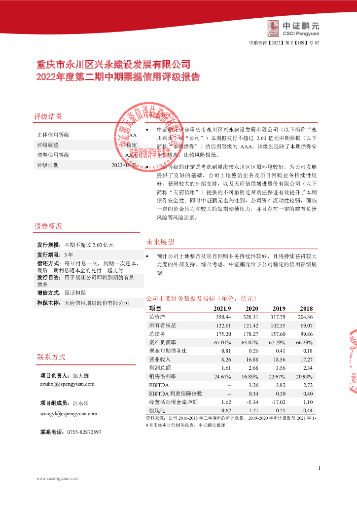 鹏元:重庆市永川区兴永建设发展有限公司2022年度第二期中期票据信用评级报告.pdf