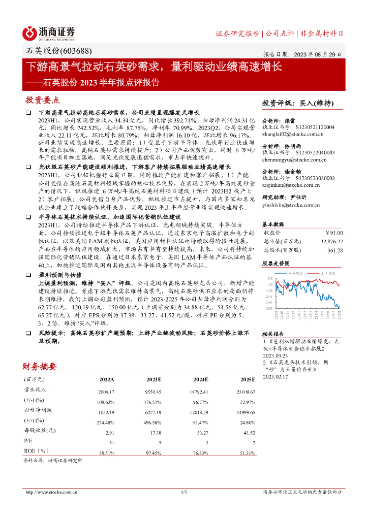 浙商证券:石英股份2023半年报点评报告:下游高景气拉动石英砂需求,量利驱动业绩高速增长.pdf