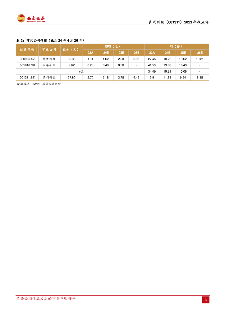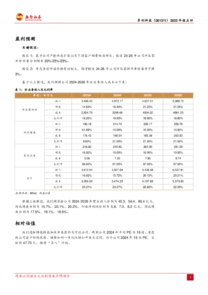 西南证券:多利科技(001311)-2023年报点评:公司业绩稳中有增,一体化压铸有待放量.pdf
