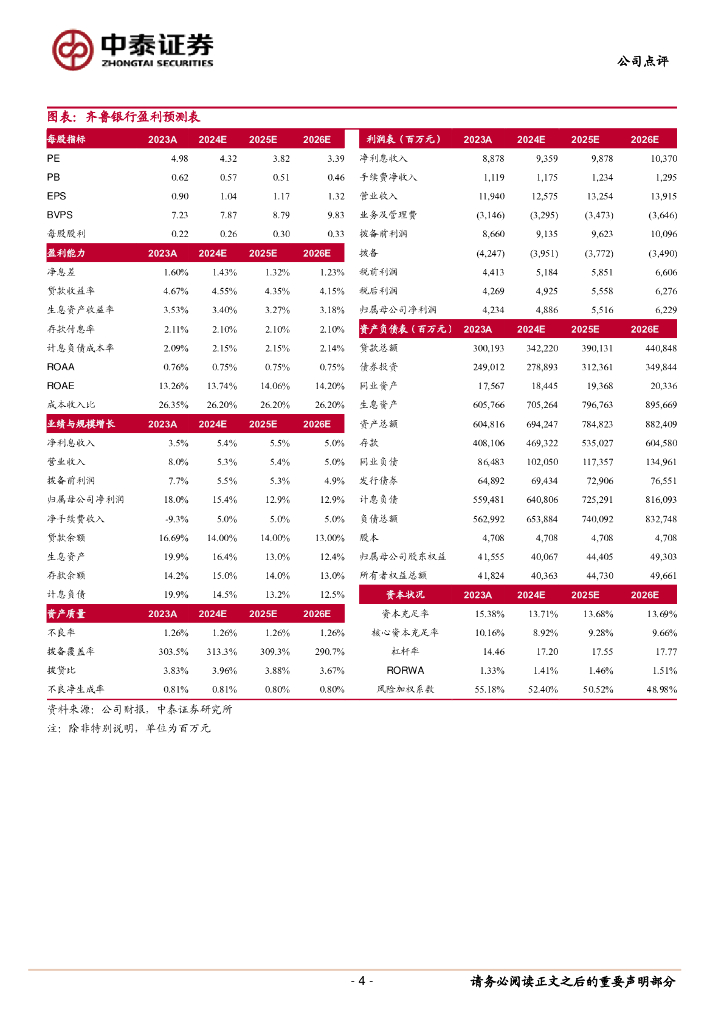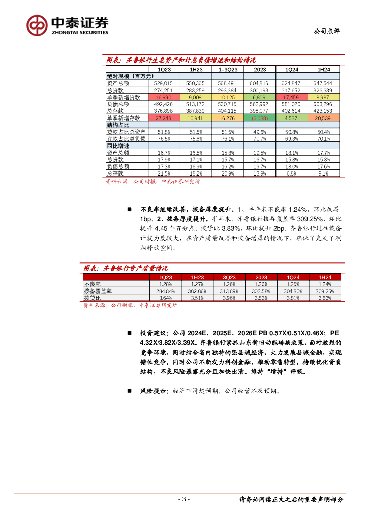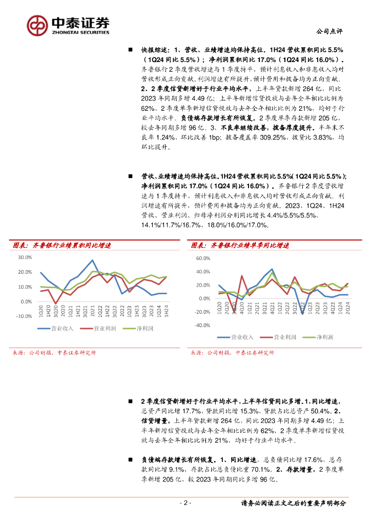 中泰证券:齐鲁银行2024中报业绩快报:规模与业绩均保持较高增速,资产质量改善.pdf