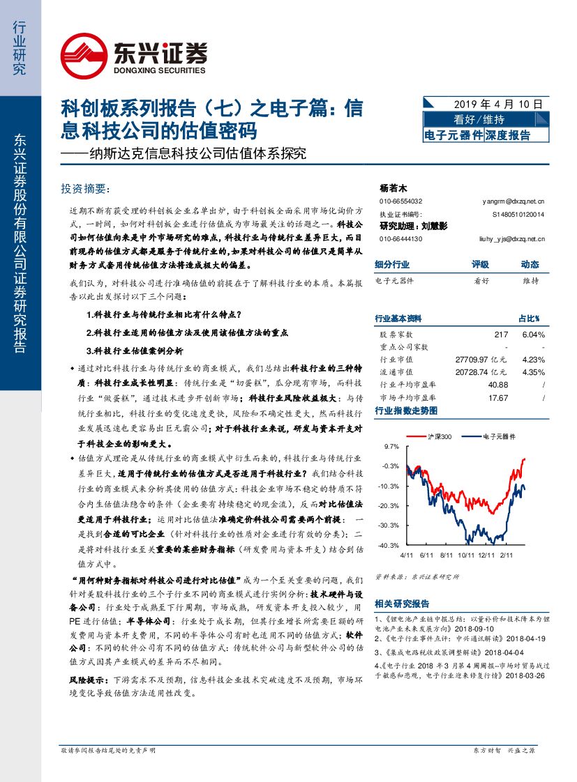 东兴证券:科创板系列报告(七)之电子篇:信息科技公司的估值密码——纳斯达克信息科技公司估值体系探究.pdf