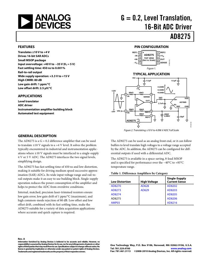 ANALOG DEVICES AD8275 英文产品 数据手册 Rev A.pdf