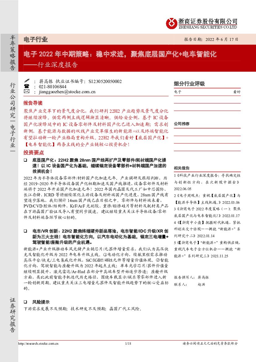浙商证券:电子2022年中期策略:稳中求进,聚焦底层国产化+电车智能化.pdf