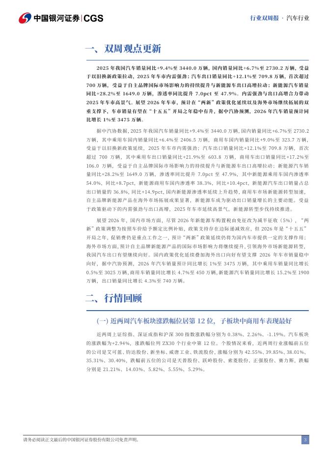 中国银河:汽车行业双周报:2025年汽车销量同比+9.4%,2026年销量预计稳中有升.pdf
