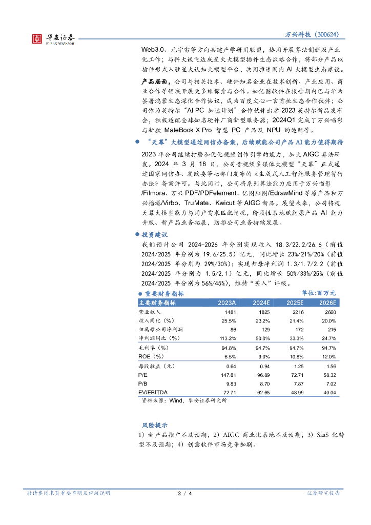 华安证券:万兴科技(300624)-2023年业绩符合预期,天幕大模型赋能AI创作.pdf