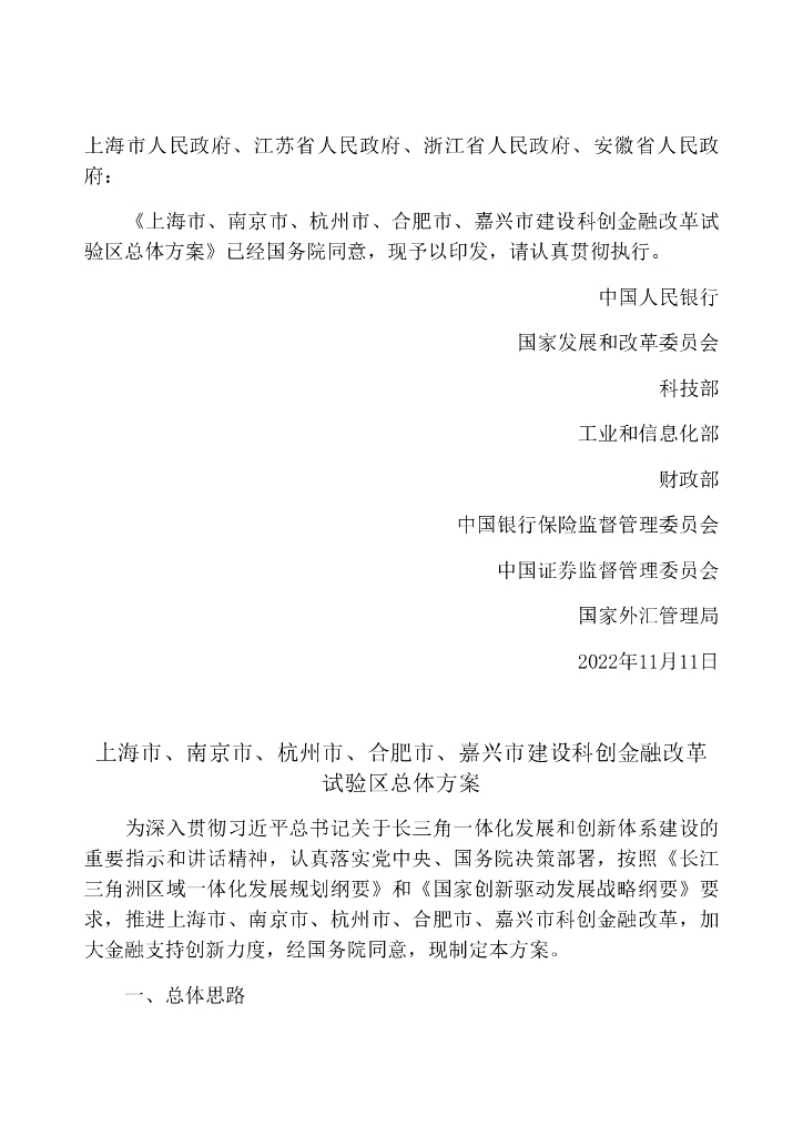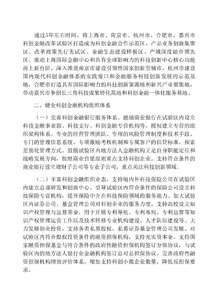 上海市、南京市、杭州市、合肥市、嘉兴市建设科创金融改革试验区总体方案.pdf