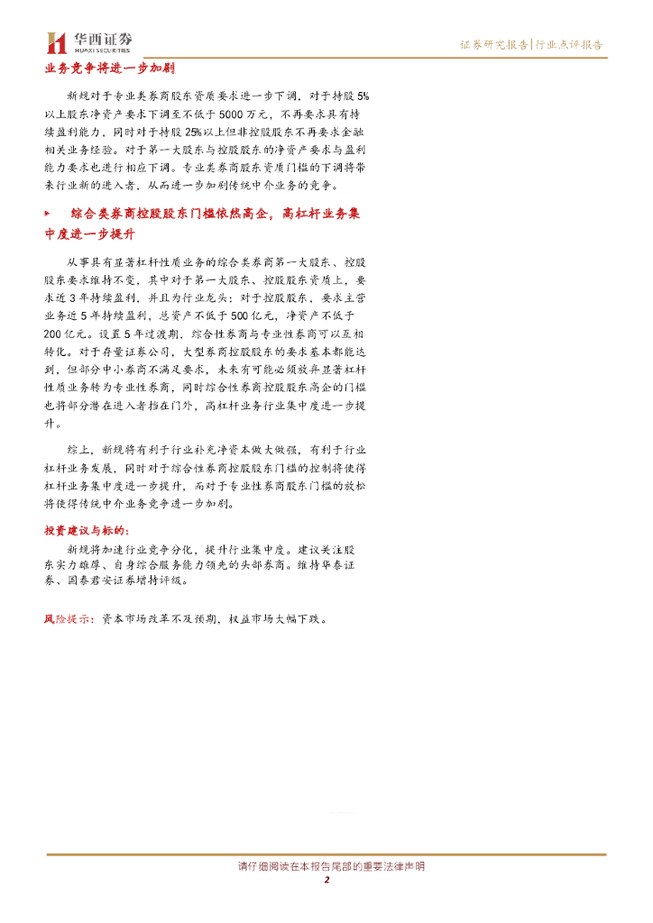 华西证券:证券行业:专业类券商资本进入门槛降低,综合类券商控股股东门槛依然高企.pdf