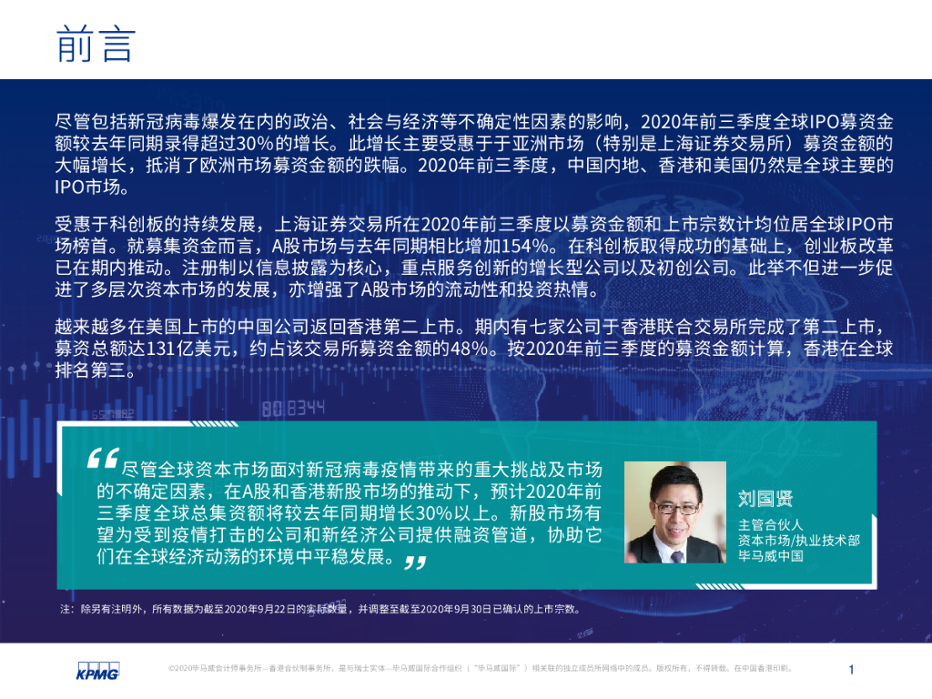 毕马威:中国内地和香港2020年前三季度回顾—IPO及其他资本市场发展趋势.pdf