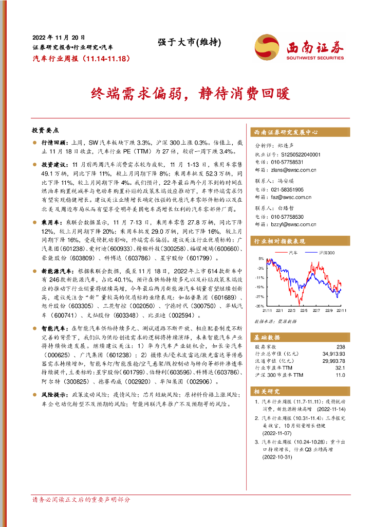 西南证券:汽车行业周报:终端需求偏弱,静待消费回暖.pdf