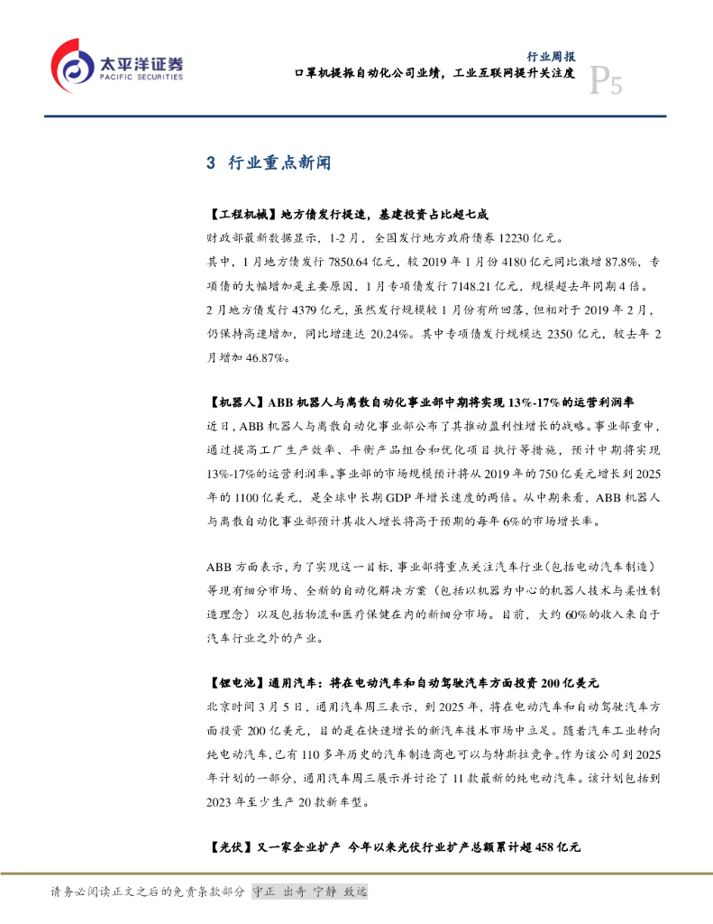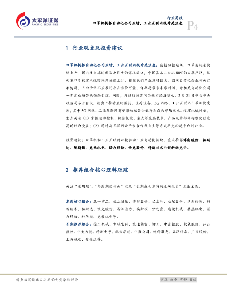 太平洋证券:机械行业周报:口罩机提振自动化公司业绩,工业互联网提升关注度.pdf