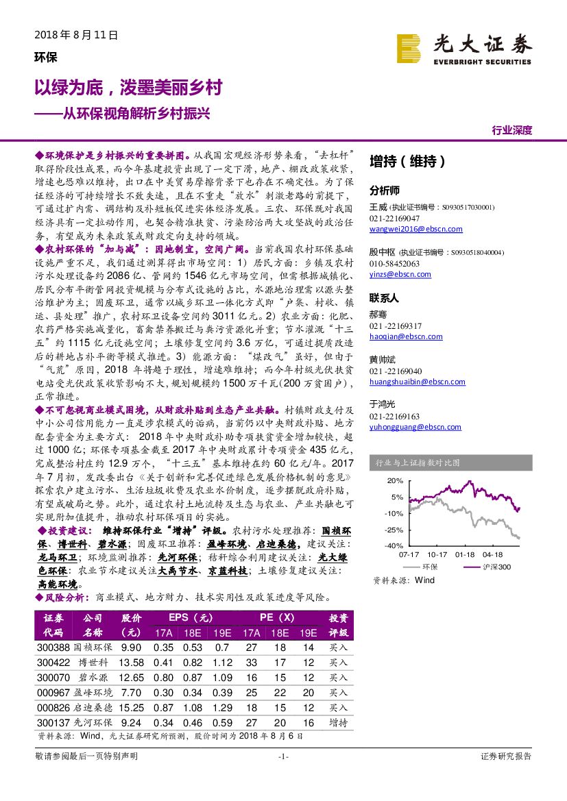 光大证券:环保行业深度:从环保视角解析乡村振兴:以绿为底,泼墨美丽乡村.pdf
