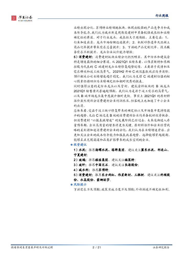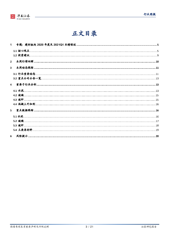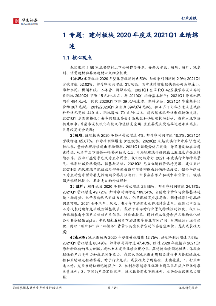华安证券:建材专题:建材行业2020年度及2021Q1业绩综述.pdf
