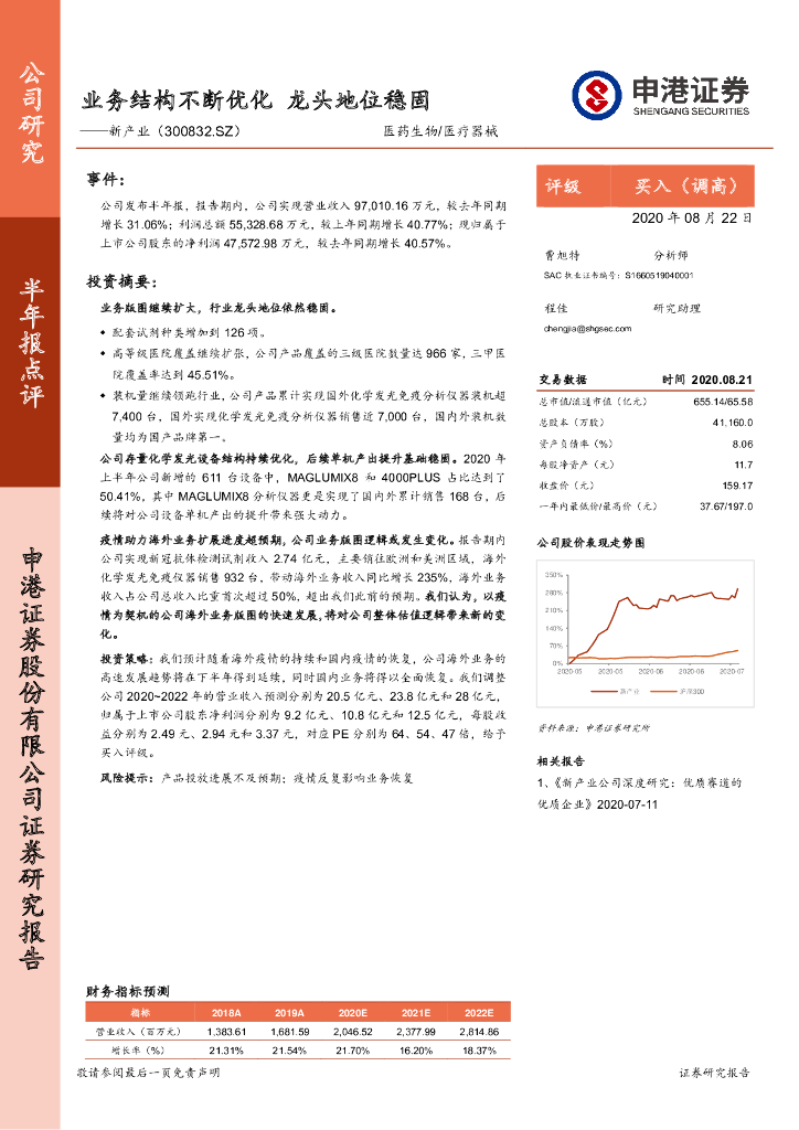 申港证券:新产业(300832)-业务结构不断优化 龙头地位稳固.pdf