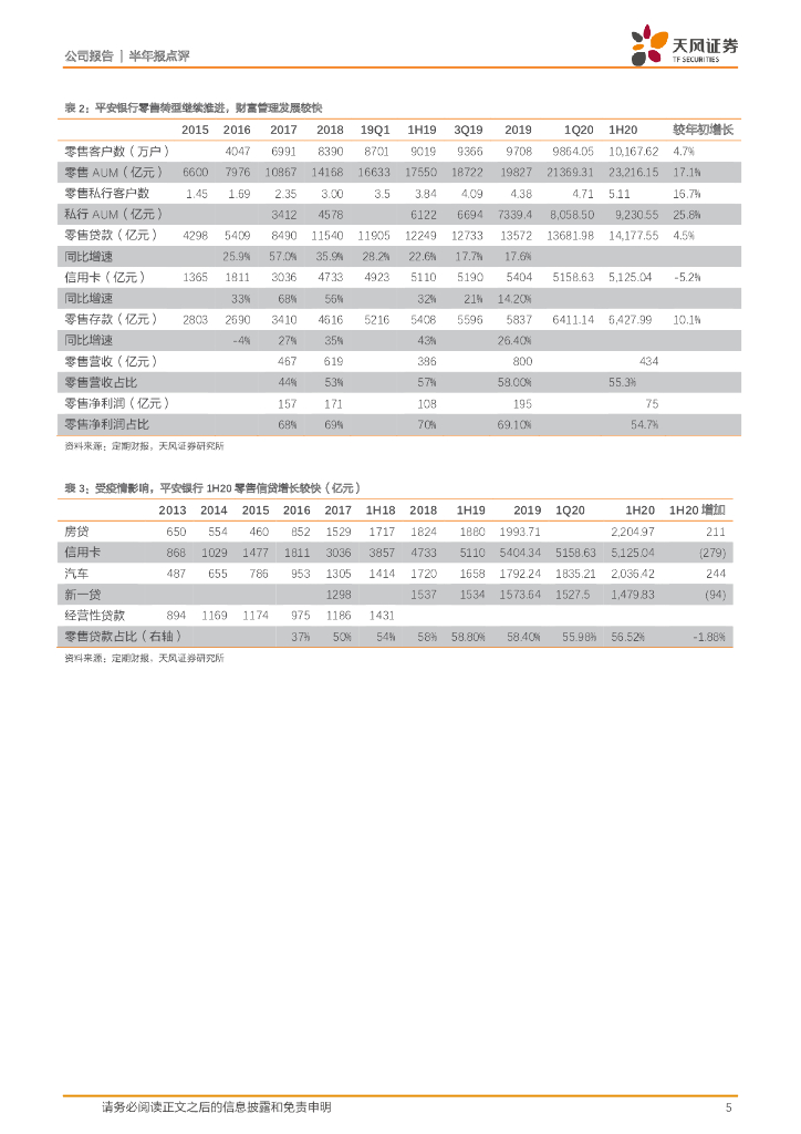 天风证券:平安银行(000001)-1H20:拨备前利润高增长,资产质量保持稳定.pdf