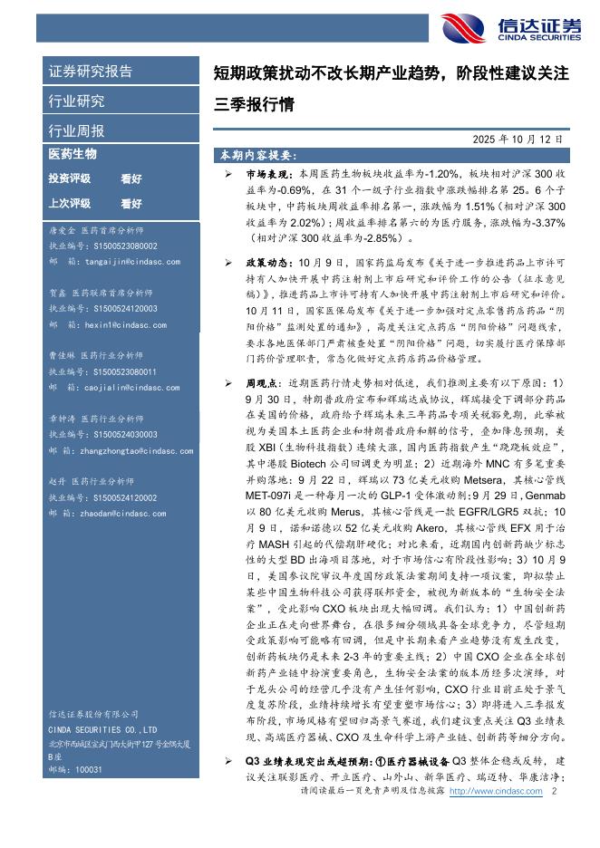 信达证券:医药生物行业周报:短期政策扰动不改长期产业趋势,阶段性建议关注三季报行情.pdf