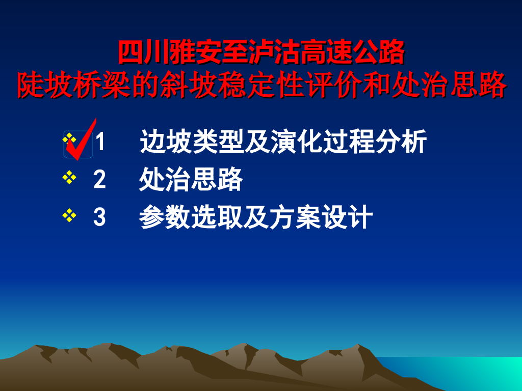 四川雅安至泸沽高速公路陡坡桥梁的斜坡稳定性评价和处治思路.ppt