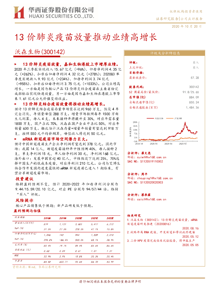 华西证券:沃森生物(300142)-13价肺炎疫苗放量推动业绩高增长.pdf
