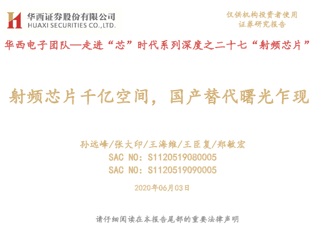华西证券:走进“芯”时代系列深度之二十七“射频芯片”:射频芯片千亿空间,国产替代曙光乍现.pdf