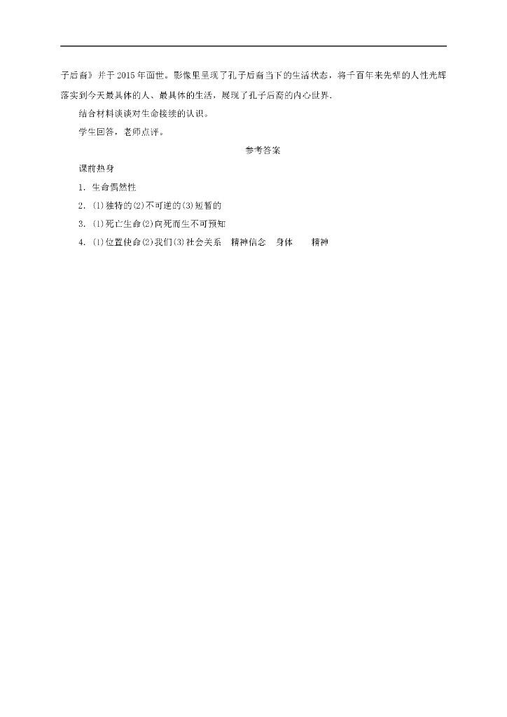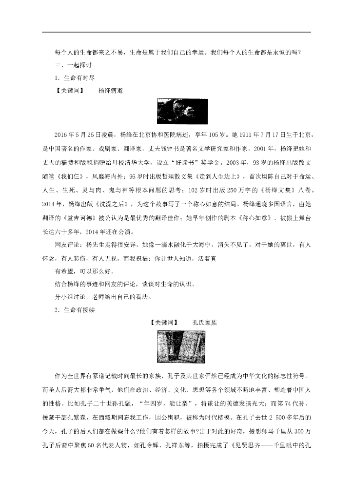 七年级上册 初中道德与法治8.1《生命可以永恒吗》教学设计2.doc