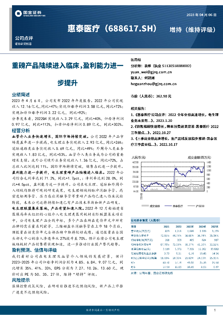 国金证券:惠泰医疗(688617)-重磅产品陆续进入临床,盈利能力进一步提升.pdf