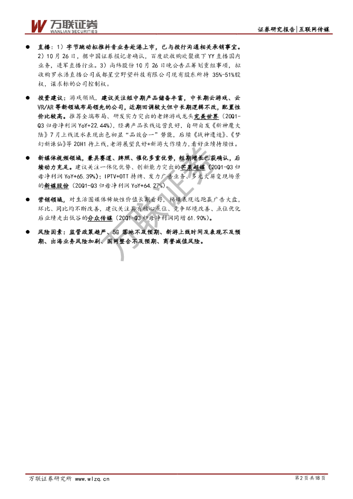 万联证券:互联网传媒行业周观点:三季报收官,出版、影视院线Q3恢复显著.pdf