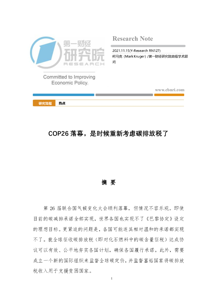 第一财经研究院:COP26落幕,是时候重新考虑碳排放税了.pdf