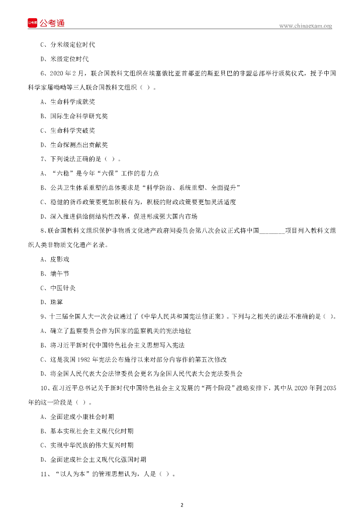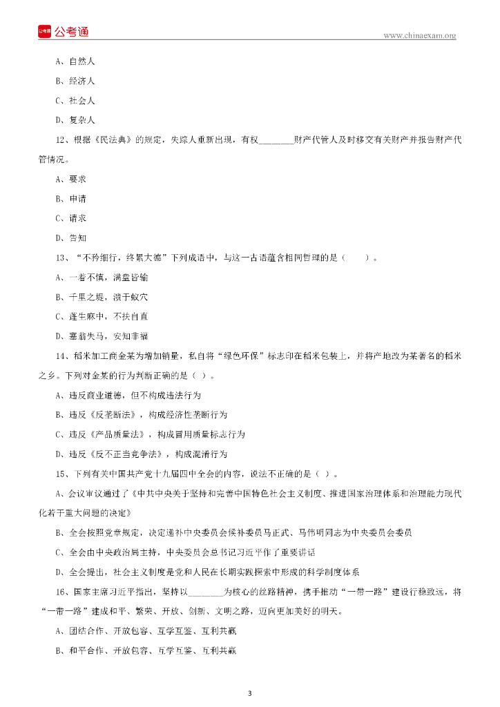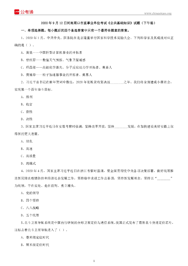2020年9月12日河南周口市直事业单位考试《公基》试题(下午场).pdf