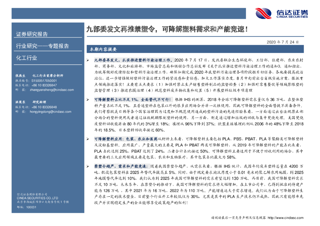 信达证券:化工行业专题报告:九部委发文再推禁塑令,可降解塑料需求和产能竞速!.pdf