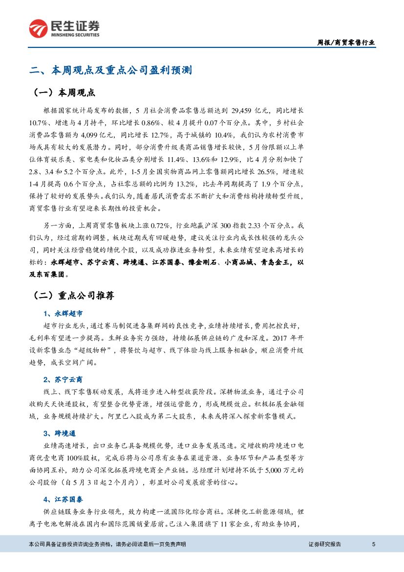 民生证券:商贸零售行业周报:5月社零同比增长10.7%,消费升级步伐加快.pdf