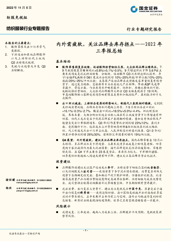 国金证券:纺织服装行业2022年三季报总结:内外需疲软,关注品牌去库存拐点.pdf
