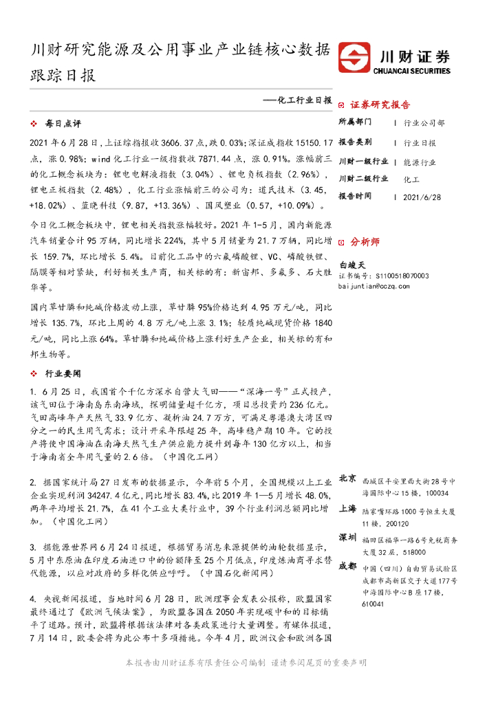 川财证券:化工行业日报:川财研究能源及公用事业产业链核心数据跟踪日报.pdf