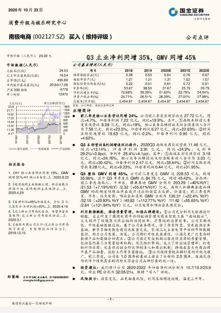 国金证券:南极电商(002127)-Q3主业净利同增35%,GMV同增45%.pdf