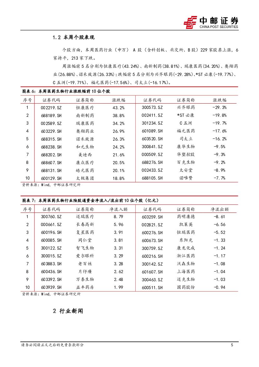 中邮证券:医药生物行业周报:医药板块小幅上涨,关于做好2022年城乡居民基本医疗保障工作的通知下发.pdf