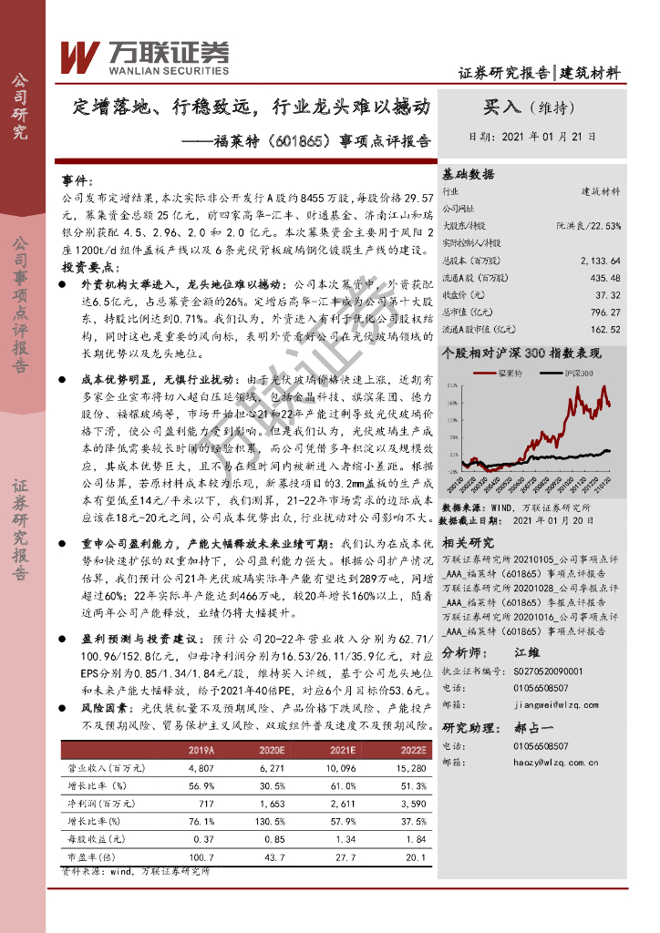 万联证券:福莱特(601865)-事项点评报告:定增落地、行稳致远,行业龙头难以撼动.pdf
